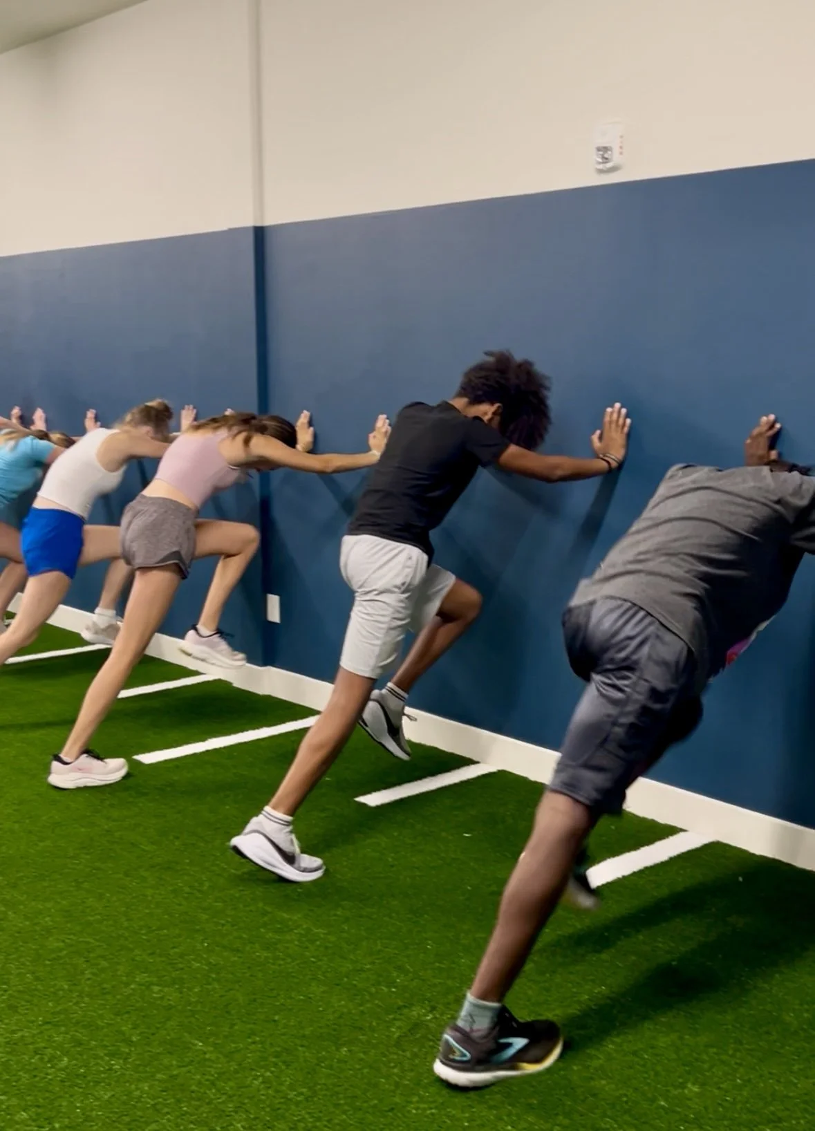 A typical session is 1 hour and 20 minutes long and includes a dynamic warm-up, activation drills, and a specific focus of the day. This will include acceleration, plyometrics, top speed, or a combination of them all. We hit strength work following our running/jumping drills and rotate between lower body focused work, and upper body focused work.